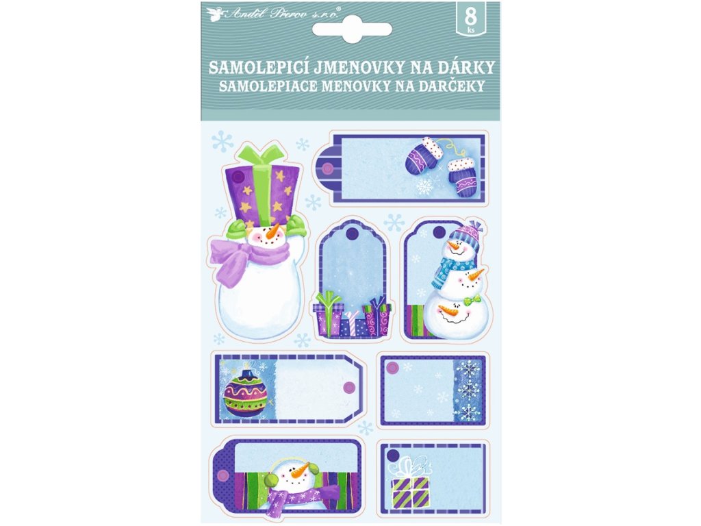 Jmenovky na dárky 3D modrofialové s glitry 8 ks 17x12,5 cm