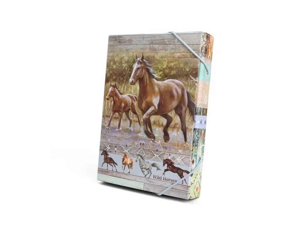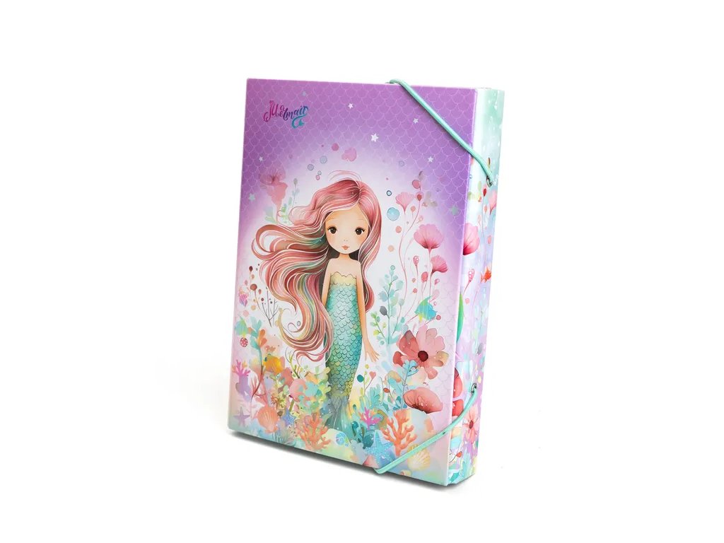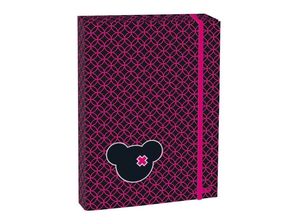 Box na sešity formátu A4, zavírání na gumičku.