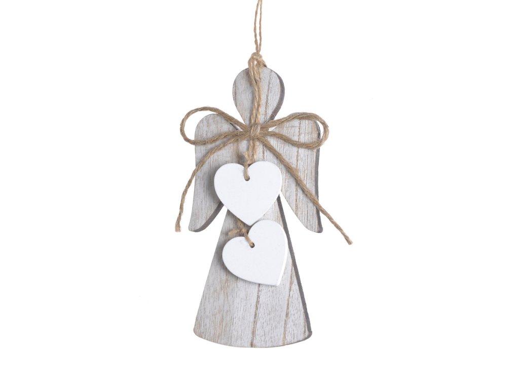 Dekorace dřevěný anděl se srdcem 15x7cm
