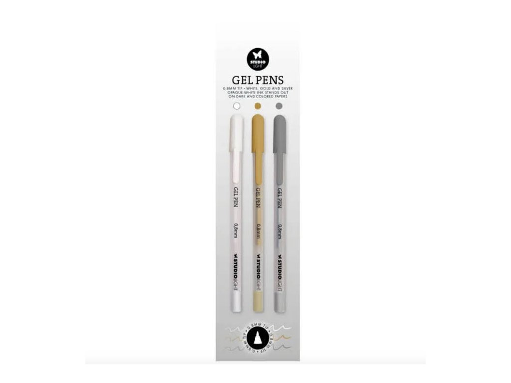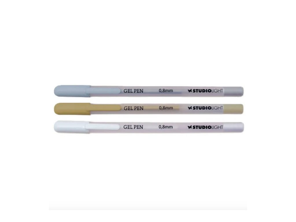 Gelová pera Studio Light, 3 ks - bílé, zlaté, stříbrné