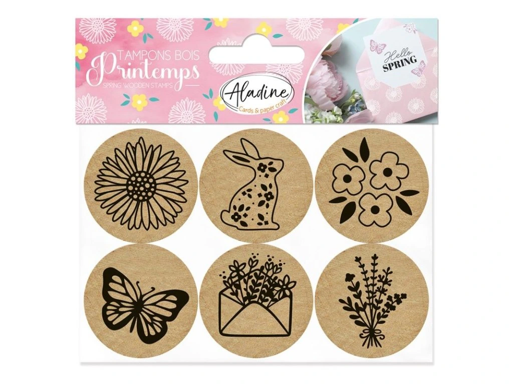 Dřevěná razítka Aladine, 6 ks - Jaro