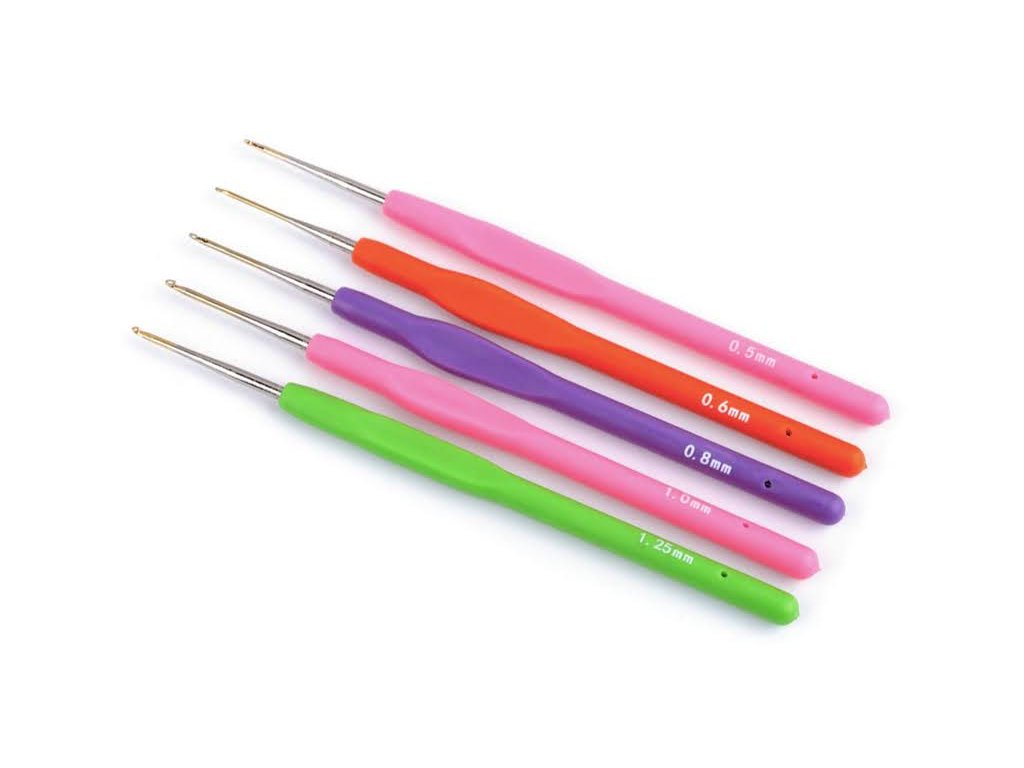 Háček na háčkování se díky měkké silikonové rukojeti pohodlně drží v ruce. Svou velikostí jsou háčky vhodné na tenké příze a bavlnky.