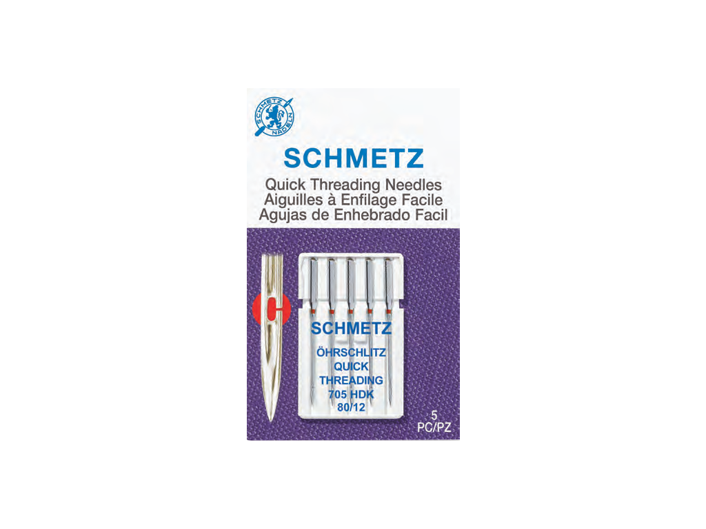 Strojové jehly s rychlým navlékáním 80; 90 Schmetz na kartě 020841