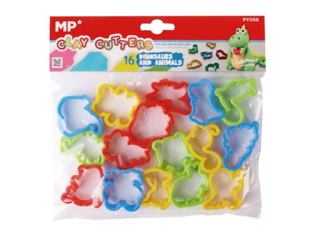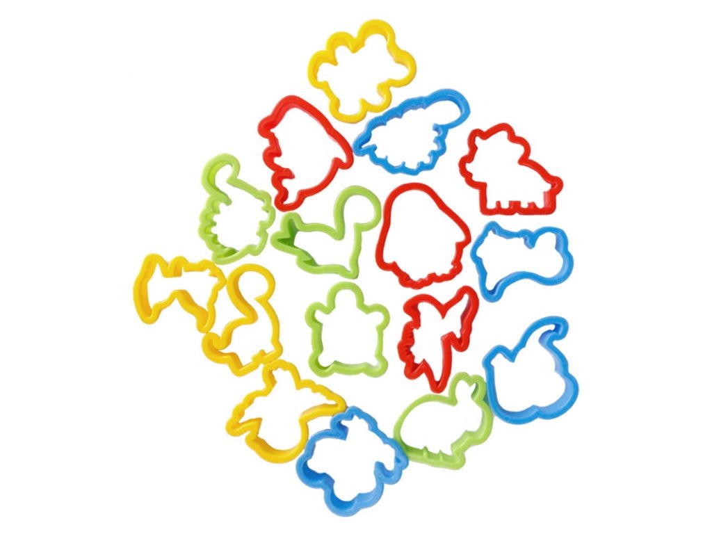 Vykrajovátka z plastu 16 ks na práci s modelovací a samotvrdnoucí hmotou, polymerovými hmotami (Cernit, FIMO, Prémo) apod. Rozměry vykrajovátek cca 4x3cm. Po použití očistěte vodou a nechte dobře vyschnout. Motivy dinosaurus. Upozornění: Nebezpečí udušení. Obsahuje malé části. Nevhodné pro děti do 3let.