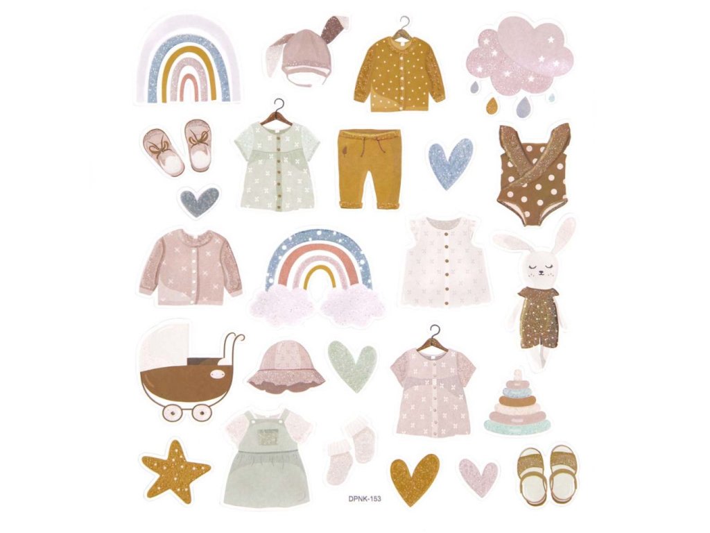 Samolepky, které můžete použít na Vaše projekty např. scrapbooking, decoupage, výzdobu kartiček, bloků, diářů a na jiné aplikace. Rozměry archu: 14,8 x 17 cm.