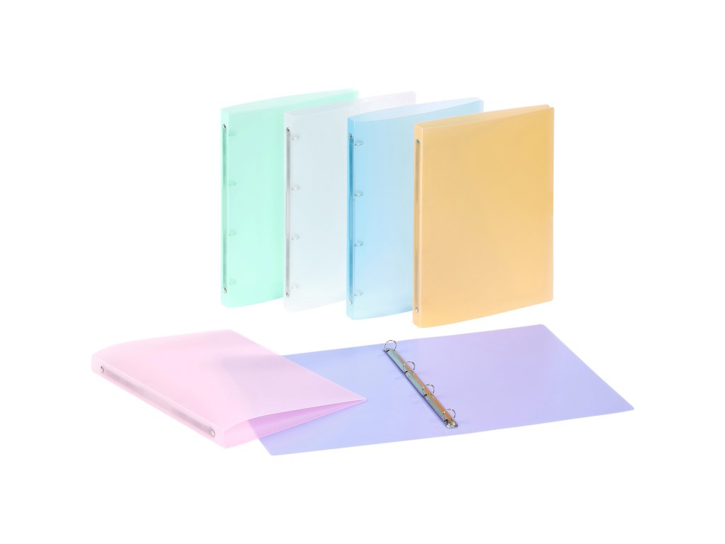 4 kroužkový PP pořadač z kolekce Propysoft - rozměr 24,3 x 31,5 cm - hřbet 2,5 cm - průměr kroužků 1,5 cm - průhledné PP desky (0,5 mm) v 6 pastelových barvách - kapacita 100 listů - vyrobeno ve Francii