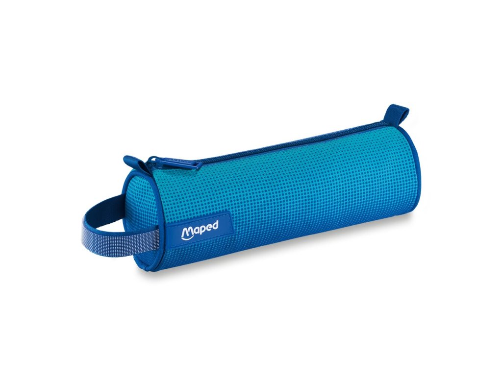 Kulaté pouzdro na psací potřeby s uzavíráním na zip. Pouzdro je vyrobeno z textilu odolného proti roztržení.