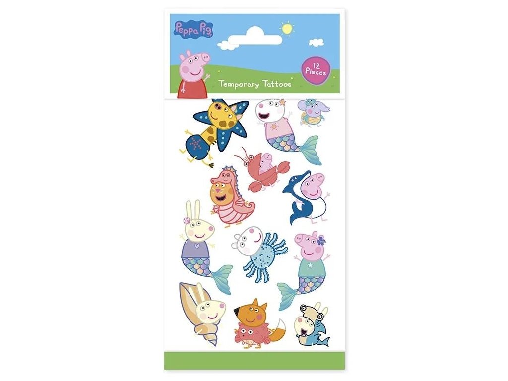 Balení obsahuje 1 arch s tetováním (12 motivů, prasátko Peppa, zvířátka, kamarádi ). Tetování jsou speciálně navržena pro pokožku dětí a dermatologicky testována.