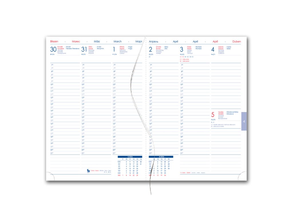 Diář obsahuje: kulaté odtrhávací rožky a bílou záložku