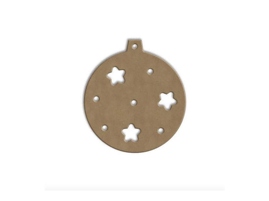 Dřevěný výřez ve tvaru vánoční ozdoby s hvězdičkami s otvorem na zavěšení. Přírodní odstín bez povrchové úpravy. Vhodný pro děti i dospělé. Rozměry 9 x 10 cm, tloušťka materiálu 6 mm. 1 kus.