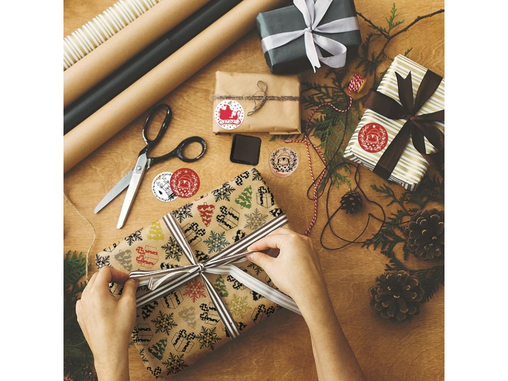 - Potiskejte textílie, vyrobte vánoční textilní ubrousky, utěrky pro babičky, trička, textilní tašky na vánoční nákupy, či dekorační poštáře– doporučujeme použít textilní razítkovací polštářky a vytvořený výrobek dobře zažehlit. Prát pak můžete zrubu na 40°C nebo doporučujeme ruční praní.