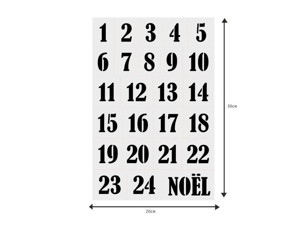 Plastová vánoční šablona s motivem čísel na adventní kalendář, 20x30 cm. Moderní jednoduchá grafika, která vynikne jako solitér na tričku, polštářích a dalších projektech.