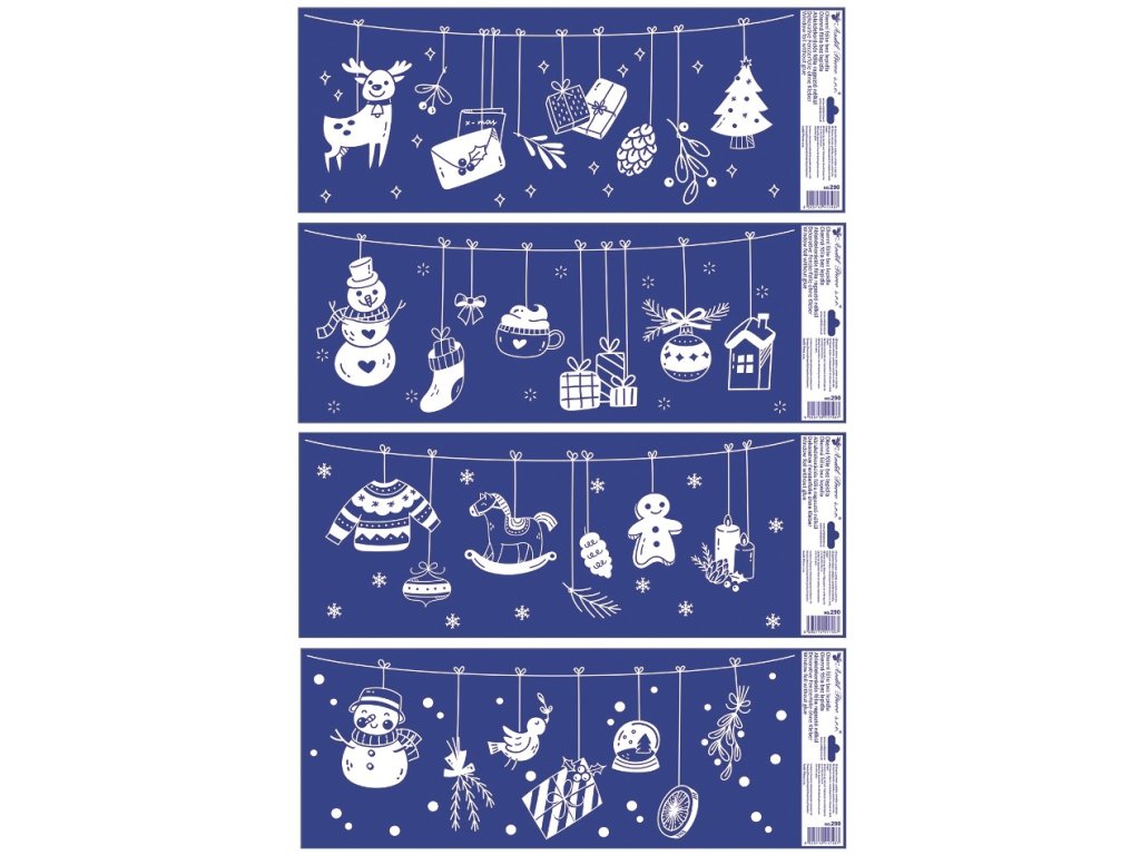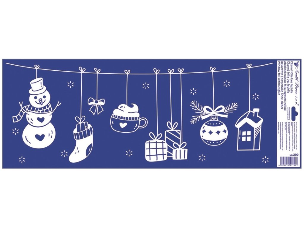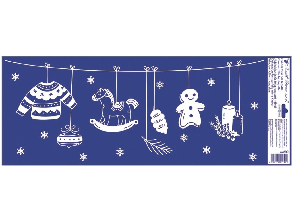 Okenní fólie bílé ozdoby na šňůrce s glitry 60 x 22,5 cm