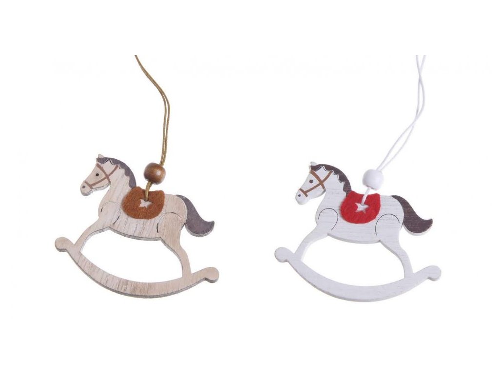 Vánoční dekorace dřevěný houpací koník 8cm 2 druhy - 2ks
